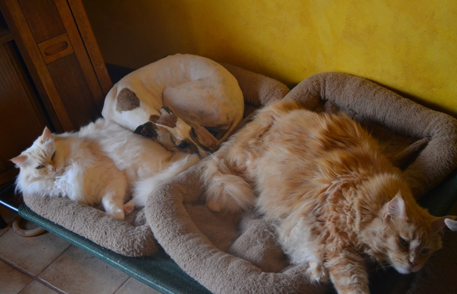 "All sacked out" - Roxy, Indy, and buddy Zoe.