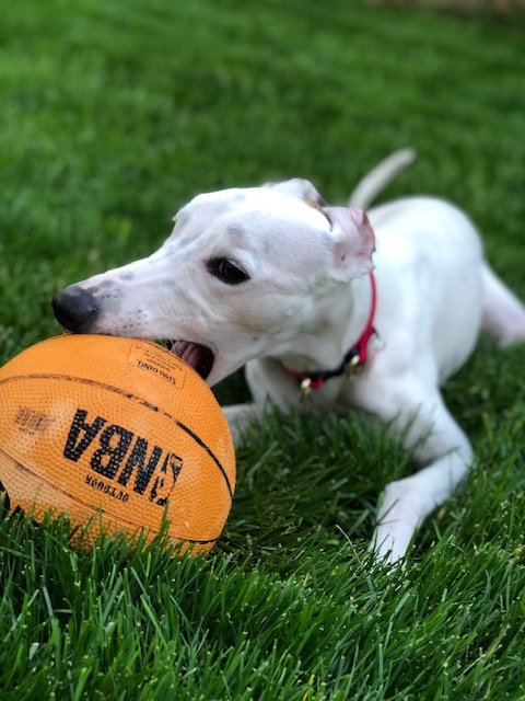 Next up, we've got Banzai (HT Andy Warhol - a full sibling to Lychee's upcoming litter), hanging out in the cool grass with his basketball: